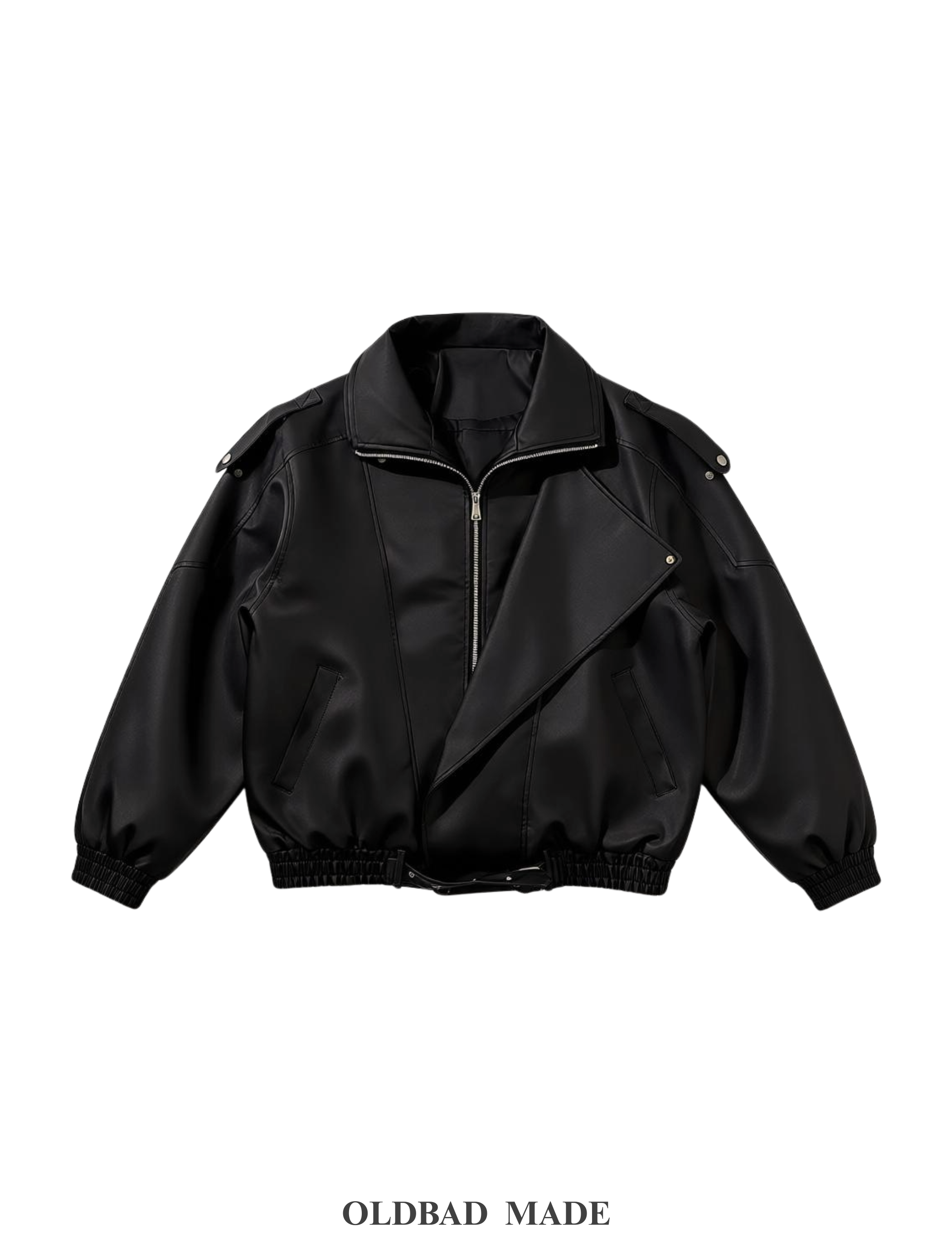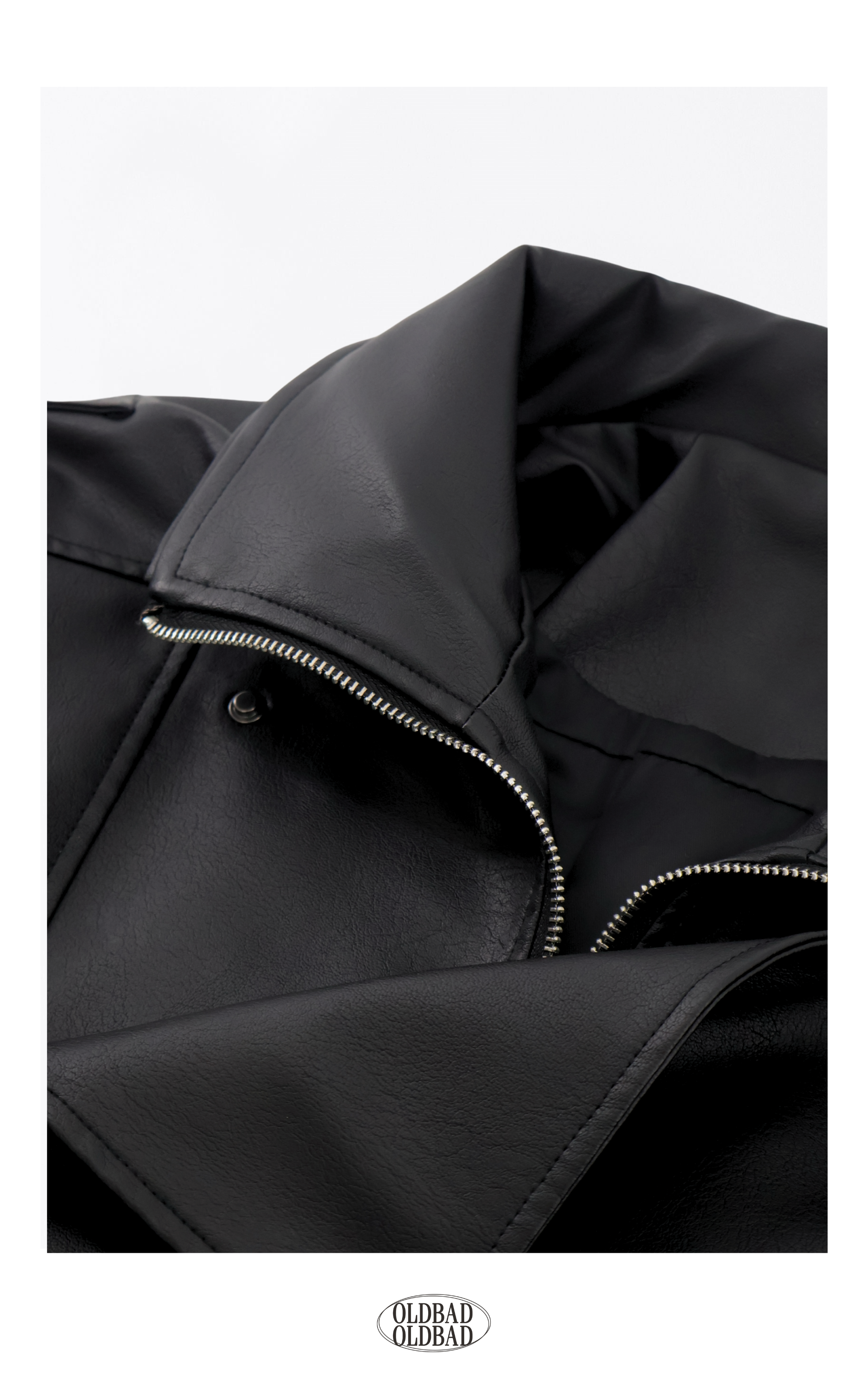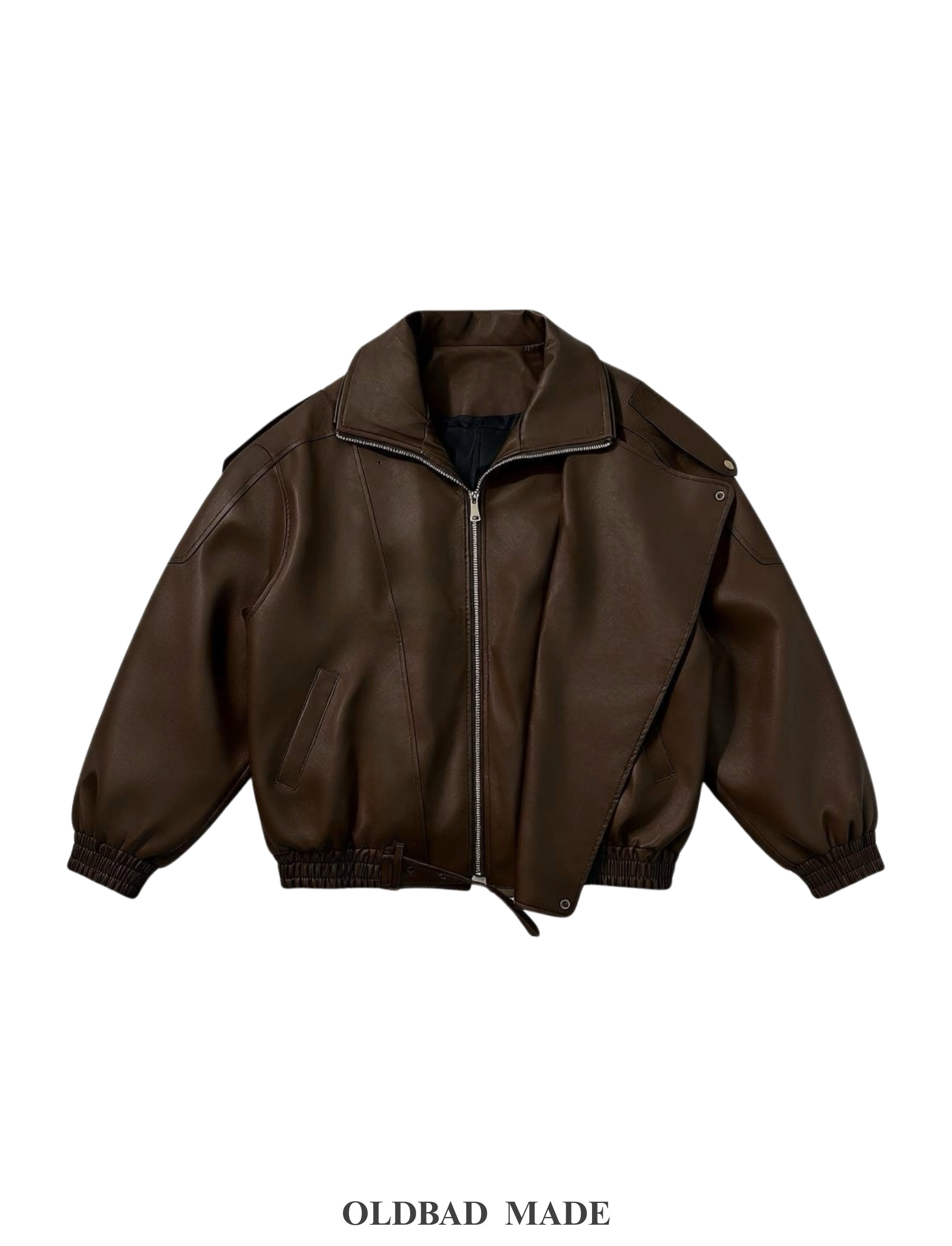 Made by Oldbad - Jazz皮外 下擺伸縮皮帶寬鬆翻領仿真皮外套