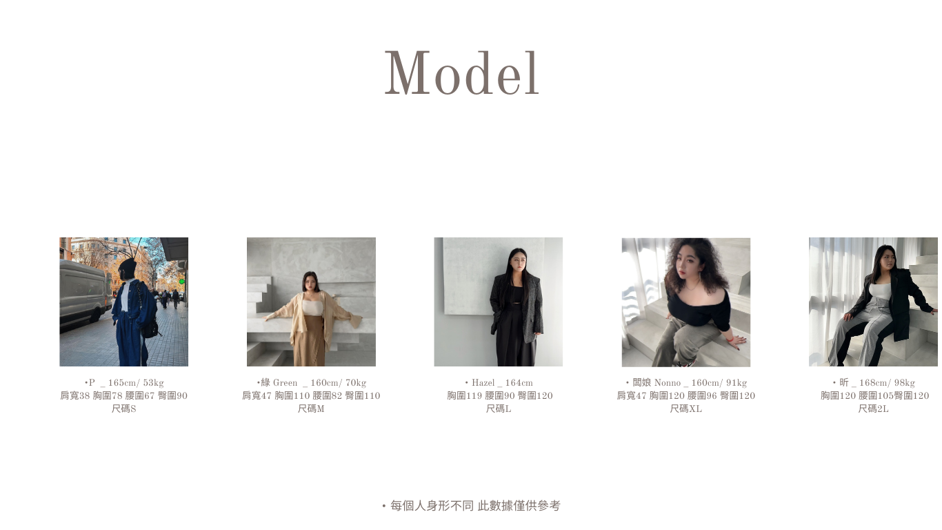 ※本尺寸表皆為水平丈量,會因布料彈性、測量起訖點等因素, 與實際商品尺寸略有誤差,誤差尺寸±3cm, 在國際驗貨標準範圍都是屬於可接受範圍,並不屬於瑕疵。※