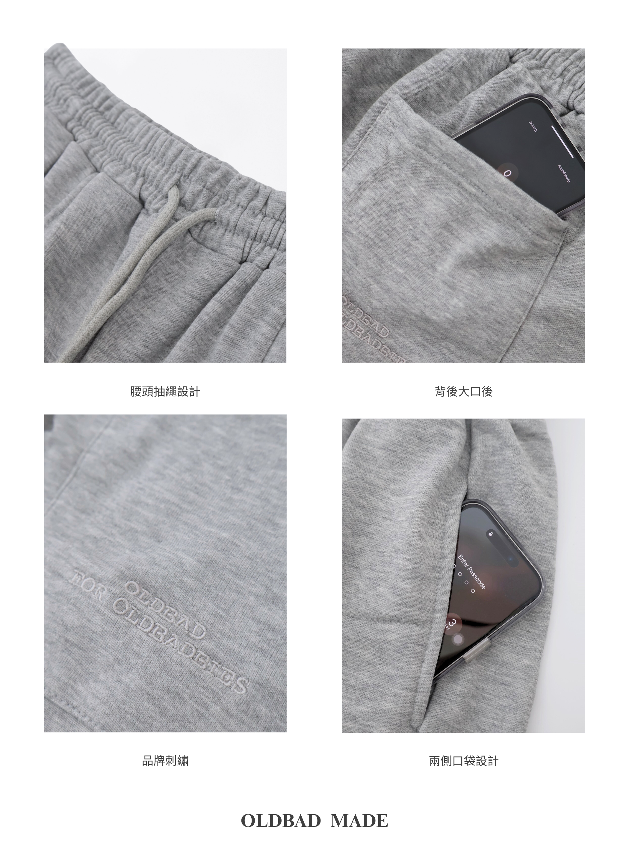 Made by Oldbad - 自由 純棉刺繡垂墜修身寬口後縮腳釦棉褲